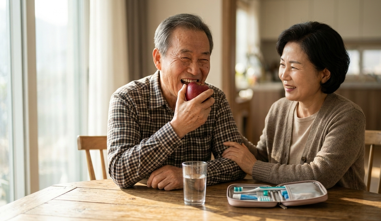 - 임플란트 틀니 고려: 전체 틀니가 너무 헐거울까 걱정된다면, 임플란트를 2개만 심고 그 위에 틀니를 똑딱이처럼 고정하는 방법도 건강보험 혜택과 연계해서 상담받아보세요!