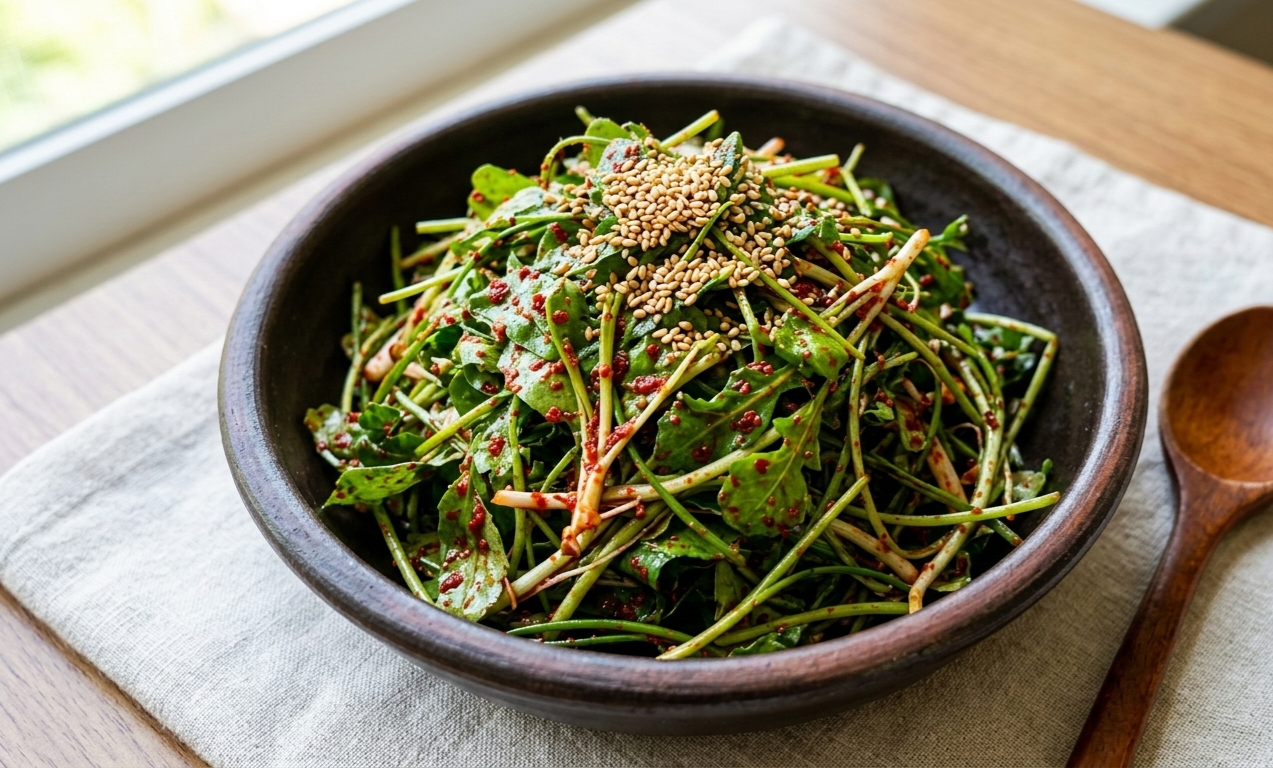 - 물기 제거는 완벽하게: 깨끗이 씻은 나물은 체에 밭쳐 물기를 완전히 빼주세요. 물기가 있으면 양념이 씻겨 내려가 싱거워집니다.